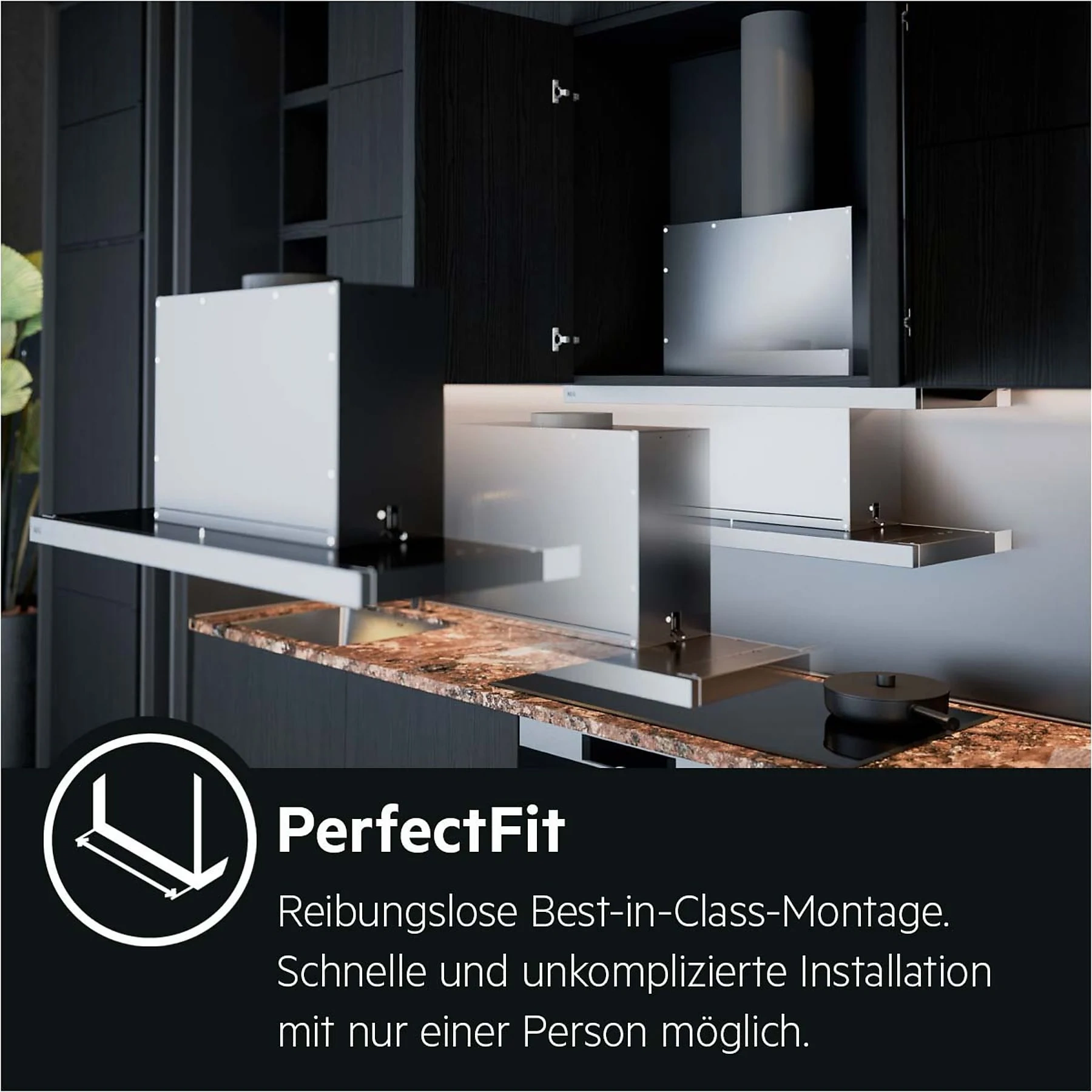 Highlights: Leistungsstarke Flachschirmhaube mit 440 m³/h, PerfectFit Einbausystem, Kopffreies Design, Metall-Fettfilter (spülmaschinengeeignet), LED-Beleuchtung, Edelstahlfront (wechselbar), Umluft-/Abluftbetrieb wahlweise.