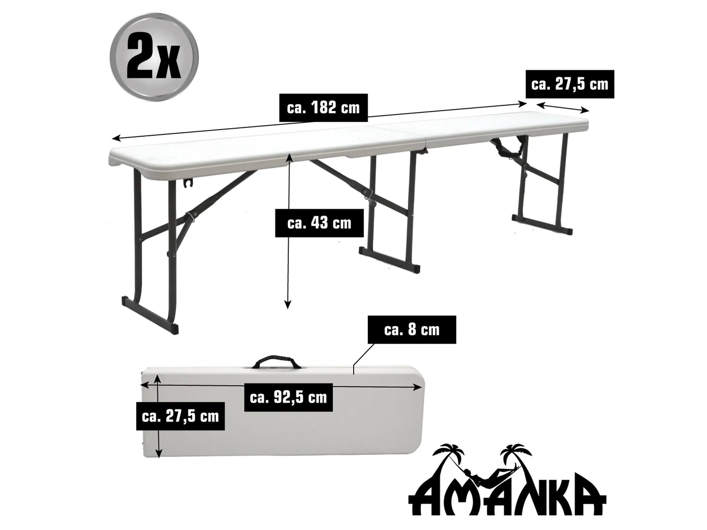 | Set-Inhalt | 1 Tisch + 2 klappbare Bänke |
