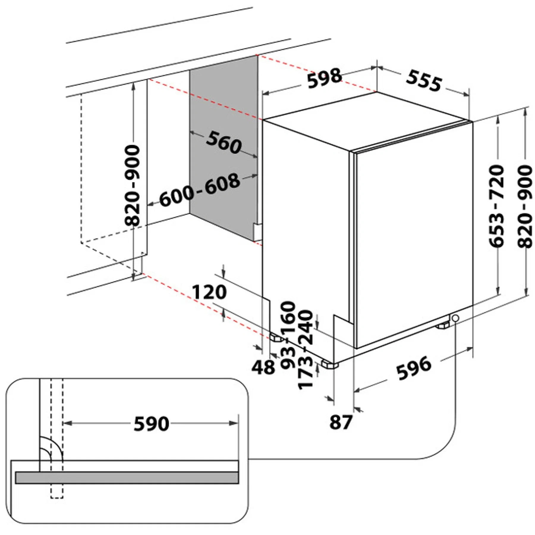 Gerät (B/H/T): ca. 598 × 820 × 555 mm • geeignet für Nischenmaß