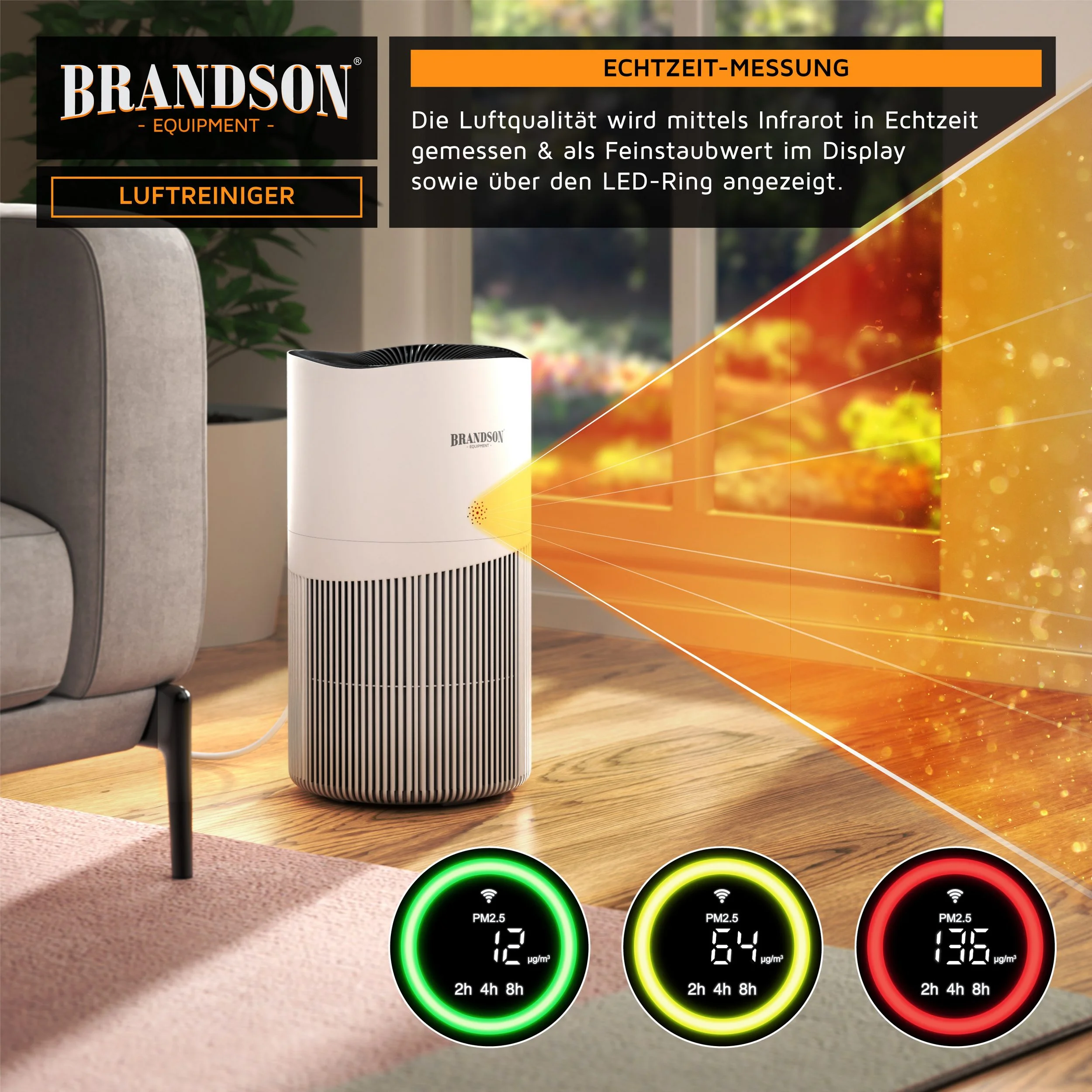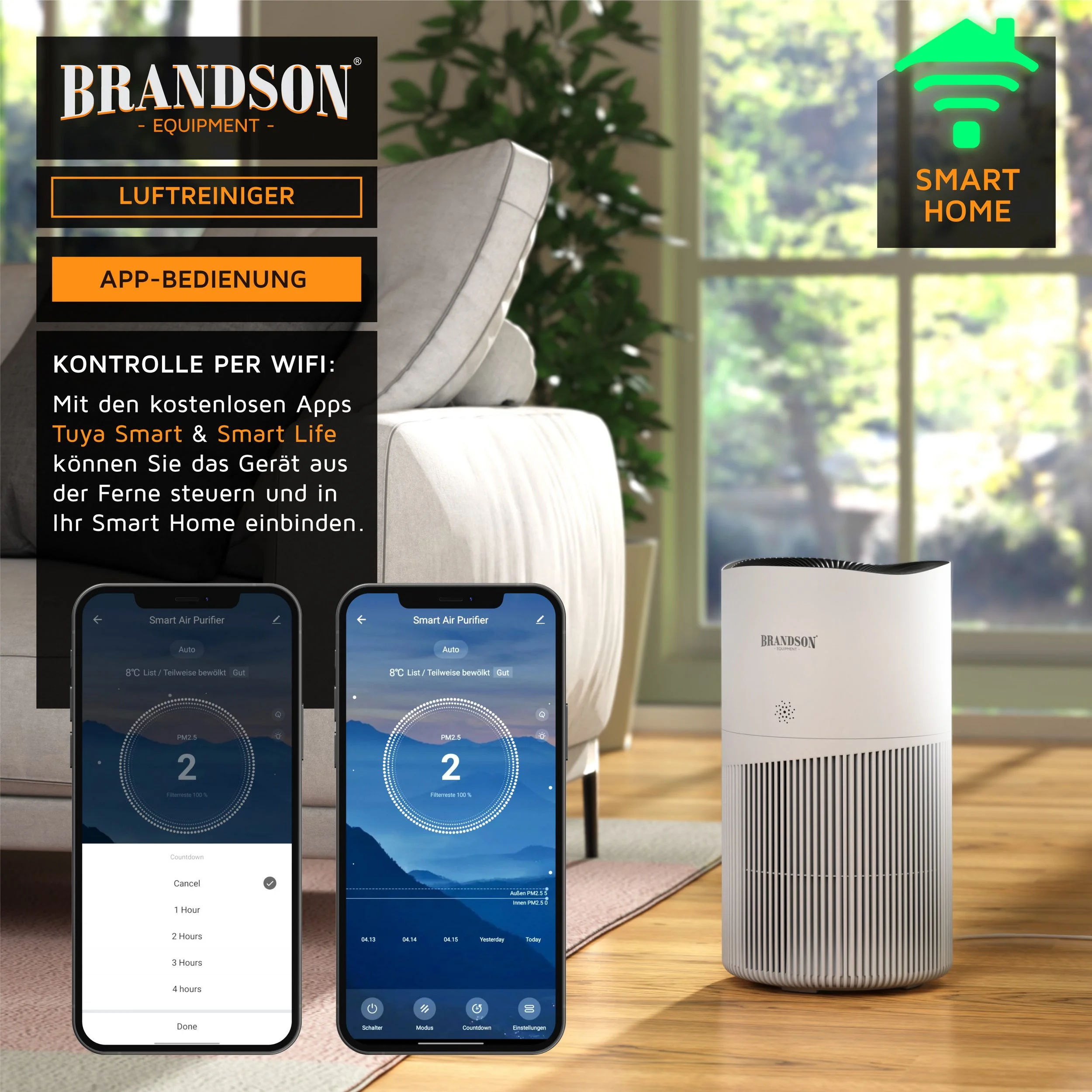 Produktinformationen "Brandson Luftreiniger – 4-Stufen-HEPA-System, Smart Home & App-Steuerung"