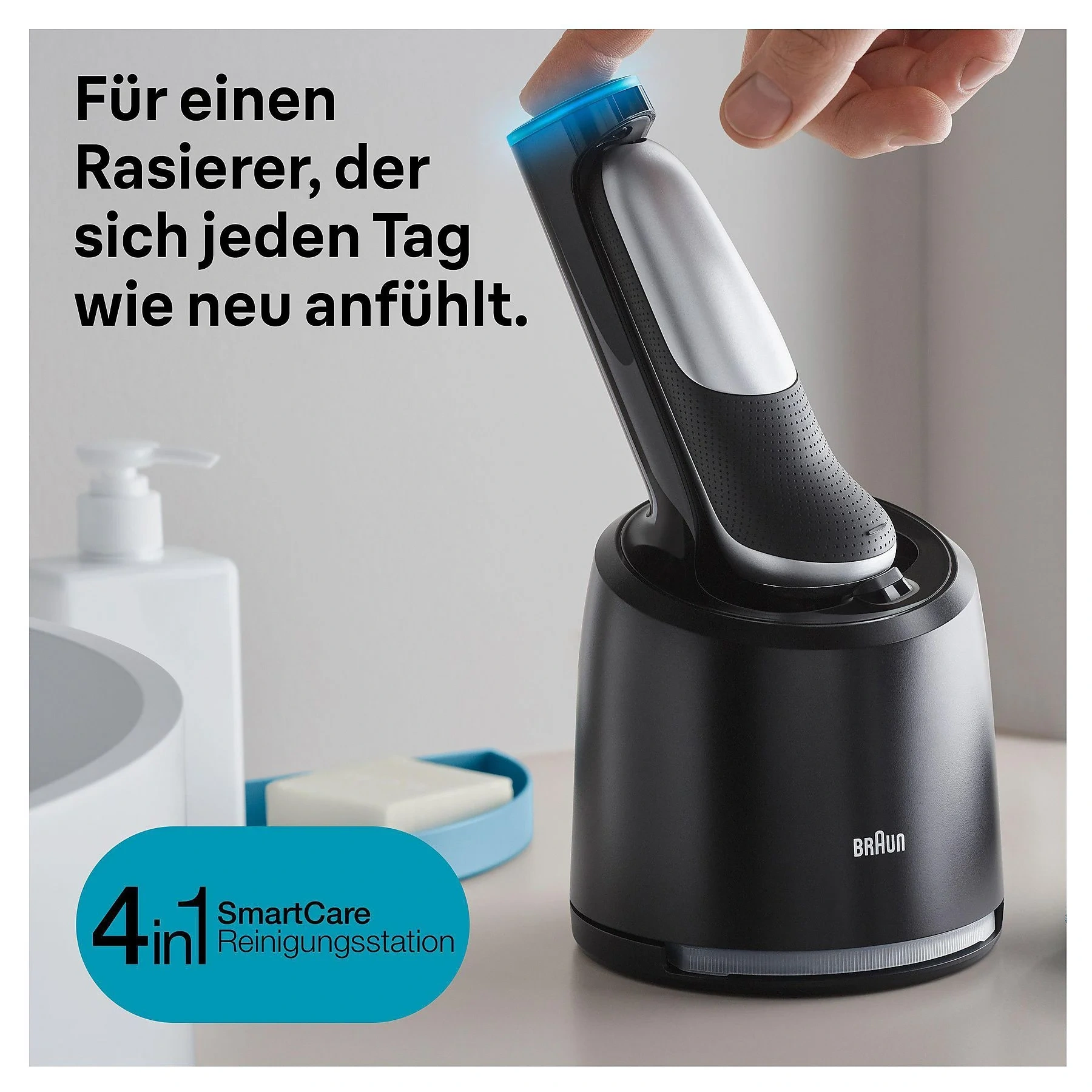 | Reinigungsstation | Inklusive Reinigungsstation zum automatischen Reinigen, Pflegen und Laden des Rasierers |