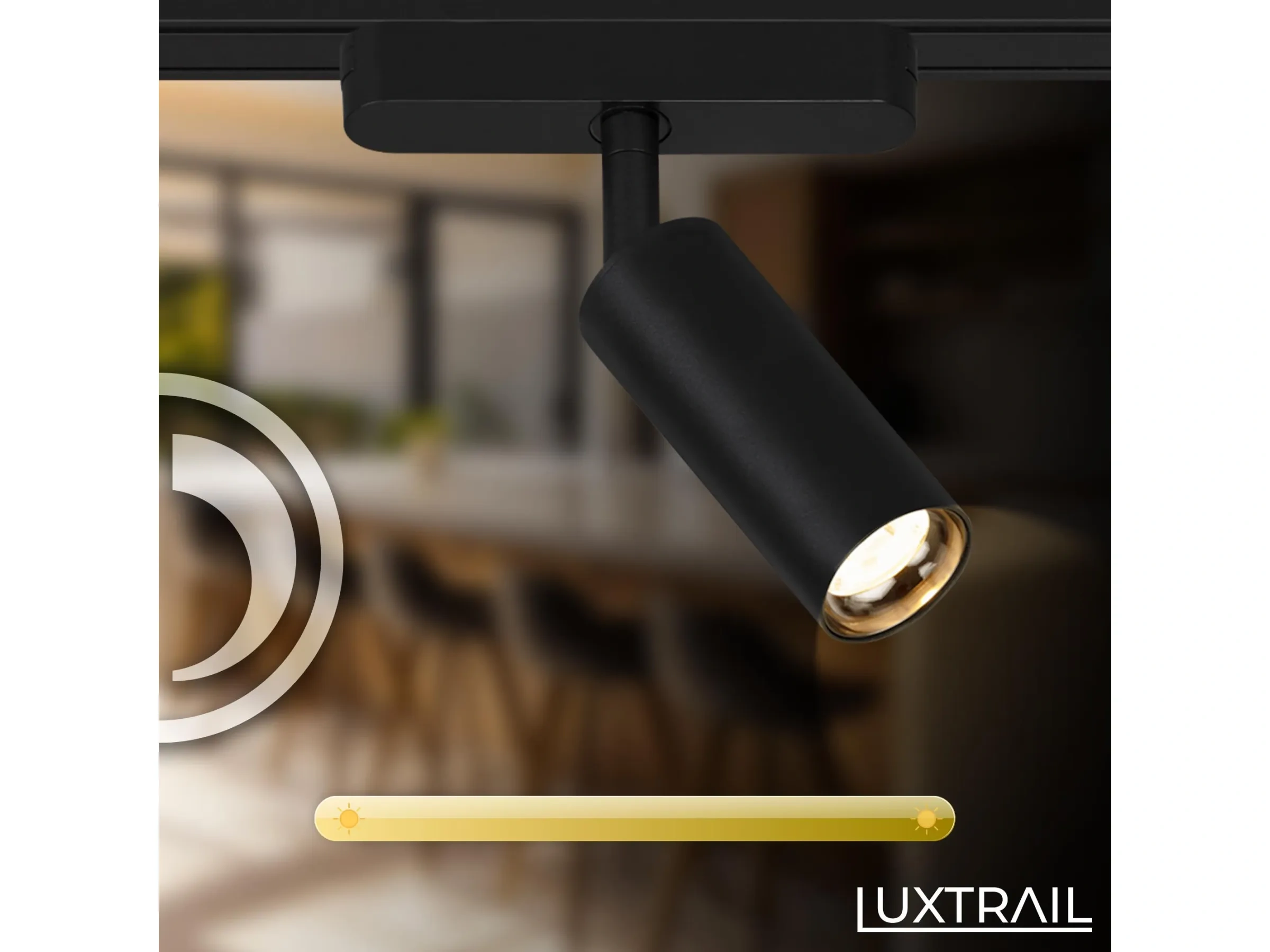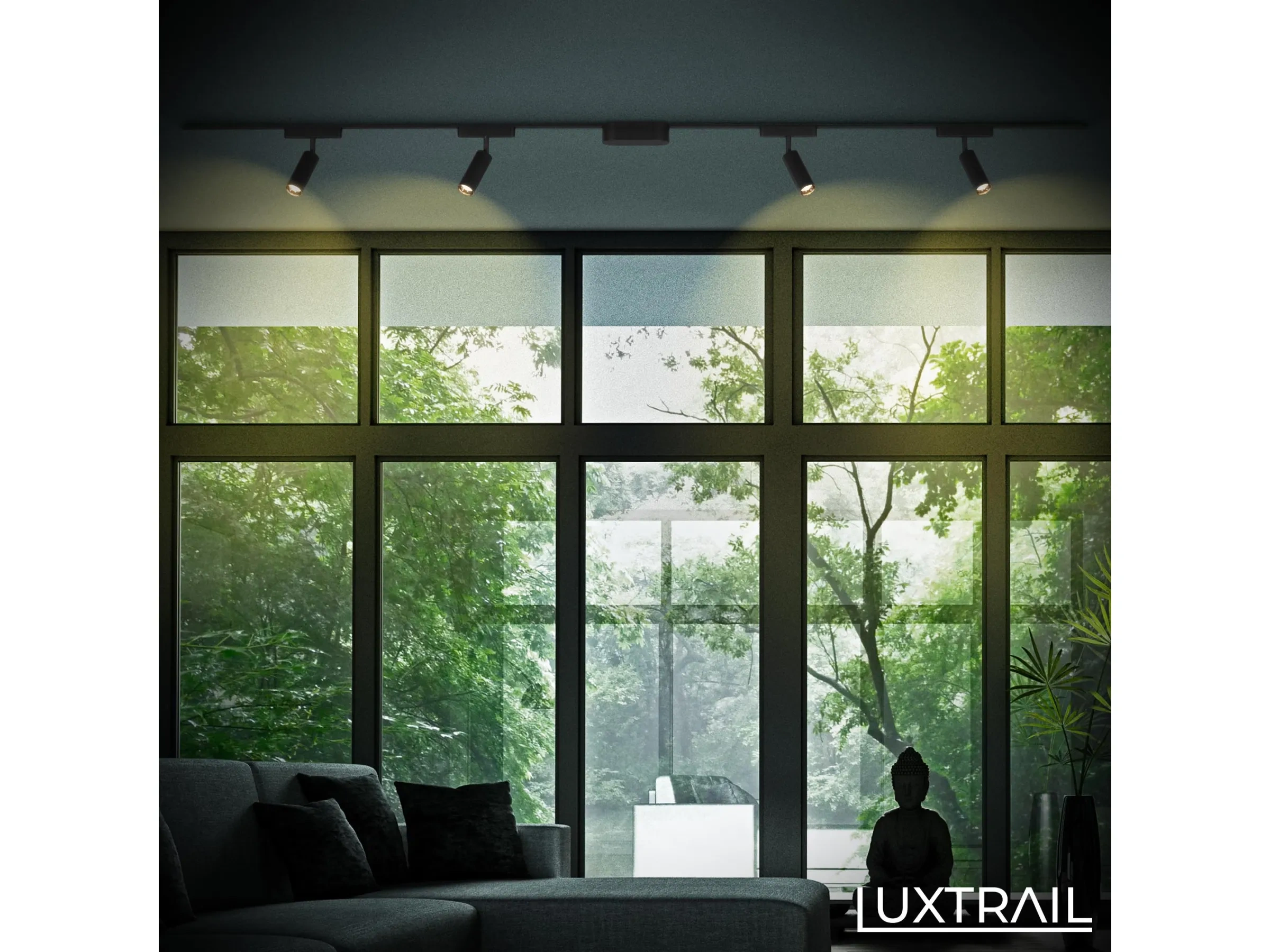 Dieses Starter-Set des Brilo Schienensystems Luxtrail bietet ein modernes, hochwertiges Design in elegantem Schwarz. Das Set enthält vier zylinderförmige LED-Spots mit je 5 W Leistung, 450 Lumen und warmweißer Lichtfarbe (3000 K) für eine gleichmäßige Beleuchtung.