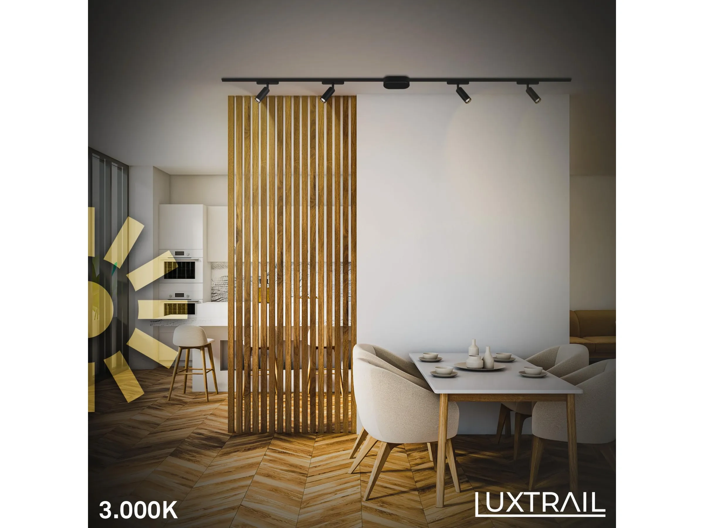 Jeder Spot überzeugt mit einer Lebensdauer von 20.000 Stunden und einem Farbwiedergabeindex von 90 für brillante Farbdarstellung. Das Set beinhaltet einen 100W-Trafo, zwei Endkappen, zwei 1 m Schienen und einen Linear-Verbinder – flexibel erweiterbar auf maximal 100 W.