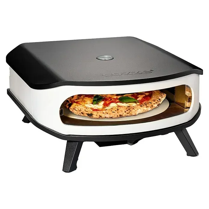 1 × Cozze Pizzaofen 1 × Drehbarer Pizzastein aus Cordierit 1 × Druckminderer 1 × Gasschlauch 1 × Hitzeschild |