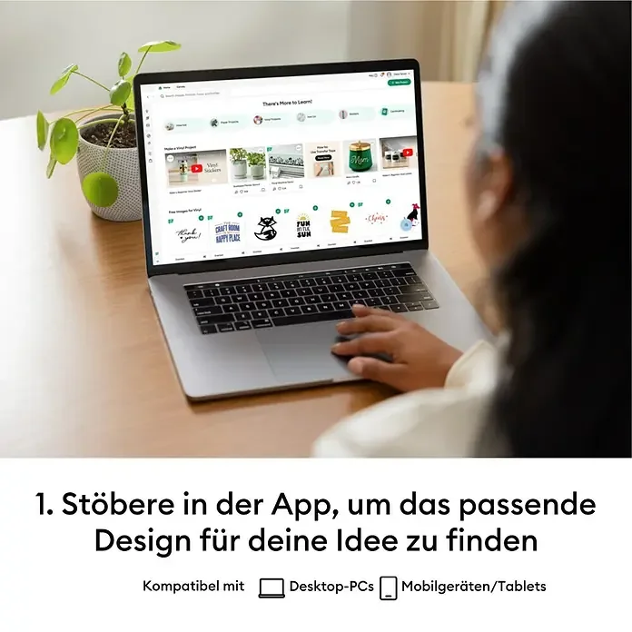 | Materialkompatibilität | Über 100 Materialien: Vinyl, Iron-On, Karton, Fotokarton, Glitzerpapier, Kork, verstärkte Stoffe u. v. m. |