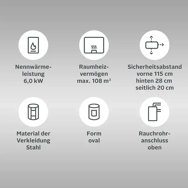 | Brennstoff | Für Holz geeignet; Dauerbrandbetrieb je nach Einsatzbereich beachten |