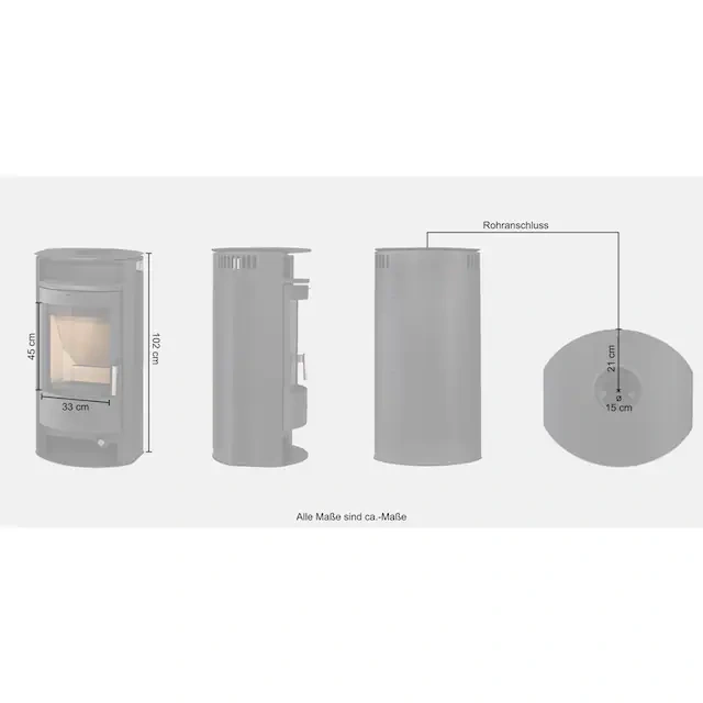 | Im Paket | 1 × Kaminofen „Heathus Parma Stahl“ • 1 × Bedienungsanleitung (Rauchrohr und Dekoration nicht enthalten) |