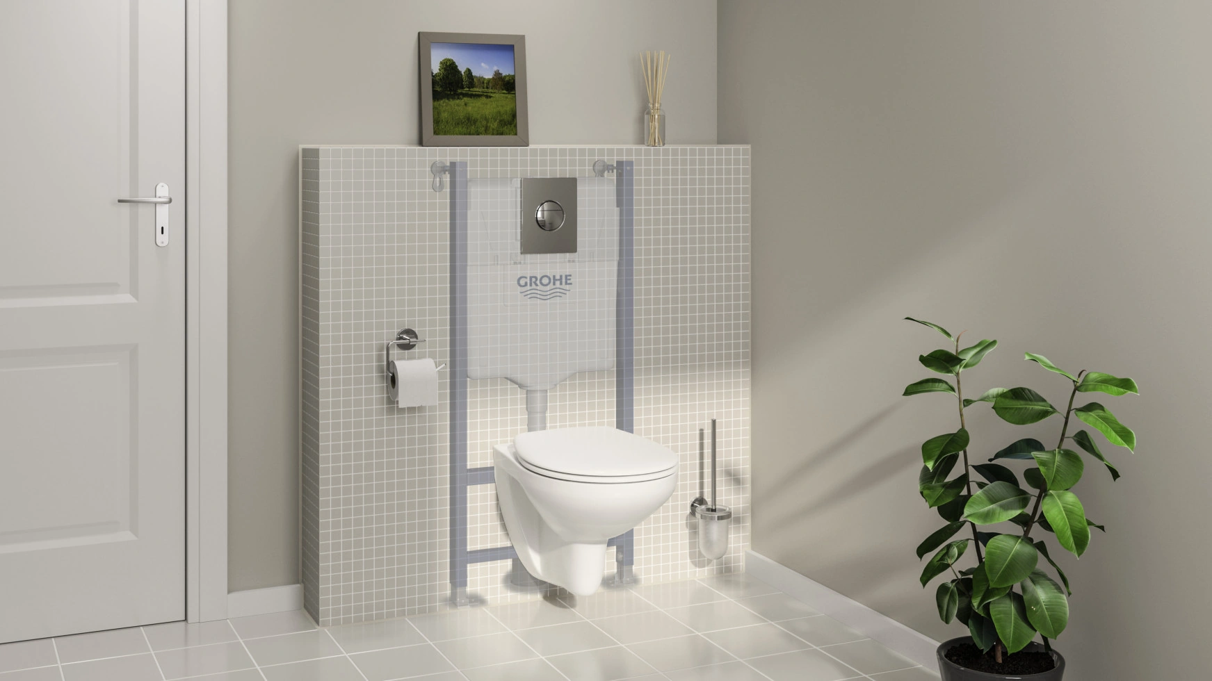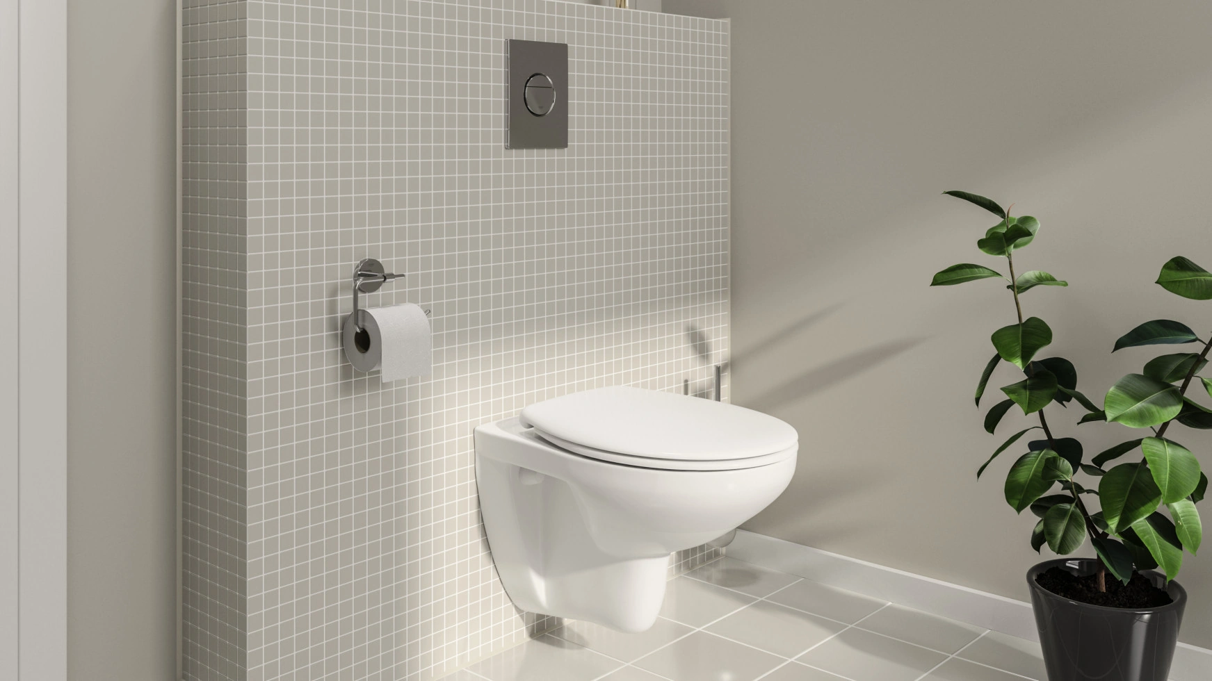 Das Grohe Solido Compact 5in1 Set enthält Wand-WC, Unterputzspülkasten und die elegante Sail Betätigungsplatte mit Grohe StarLight Chromoberfläche. Ideal zur Modernisierung und Optimierung von Badkomfort.