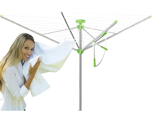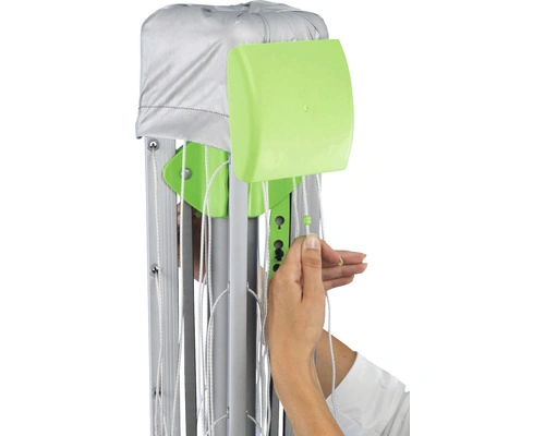 - Leichtspann-Hebel für einfaches Öffnen und Spannen der Wäschespinne.