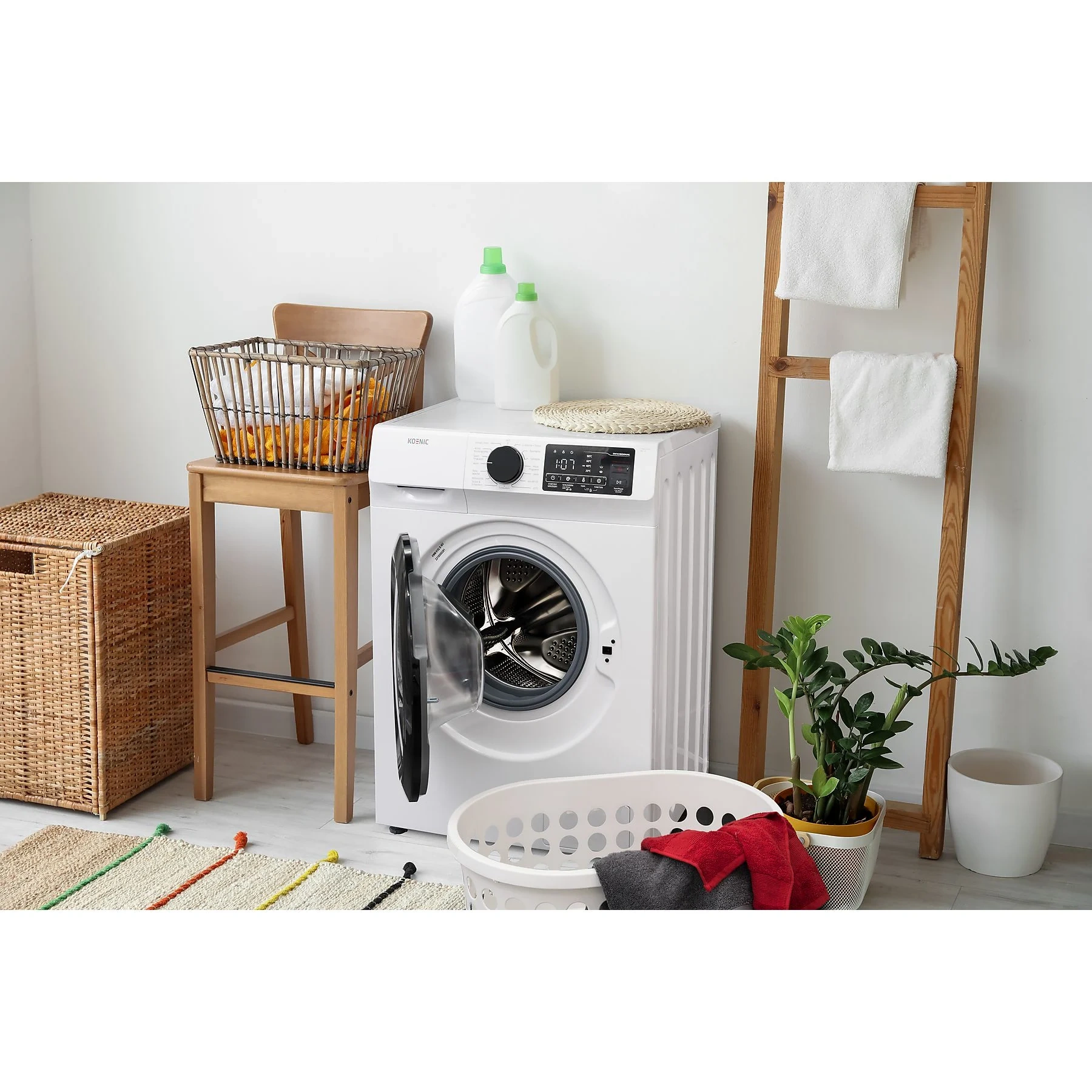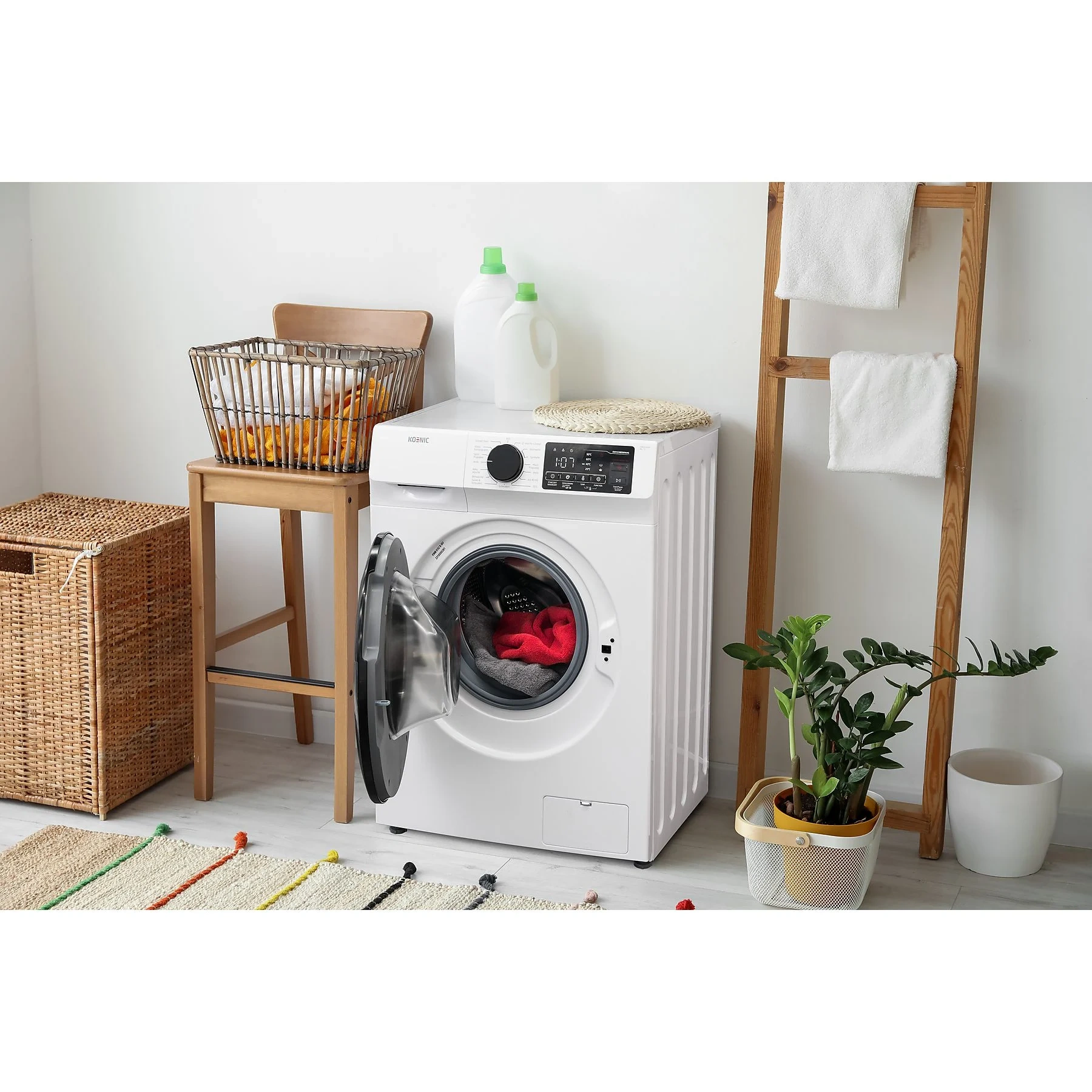 1 × KOENIC Waschmaschine KWM 8152 A INV 1 × Zulaufschlauch 1 × Ablaufschlauch 1 × Bedienungsanleitung |