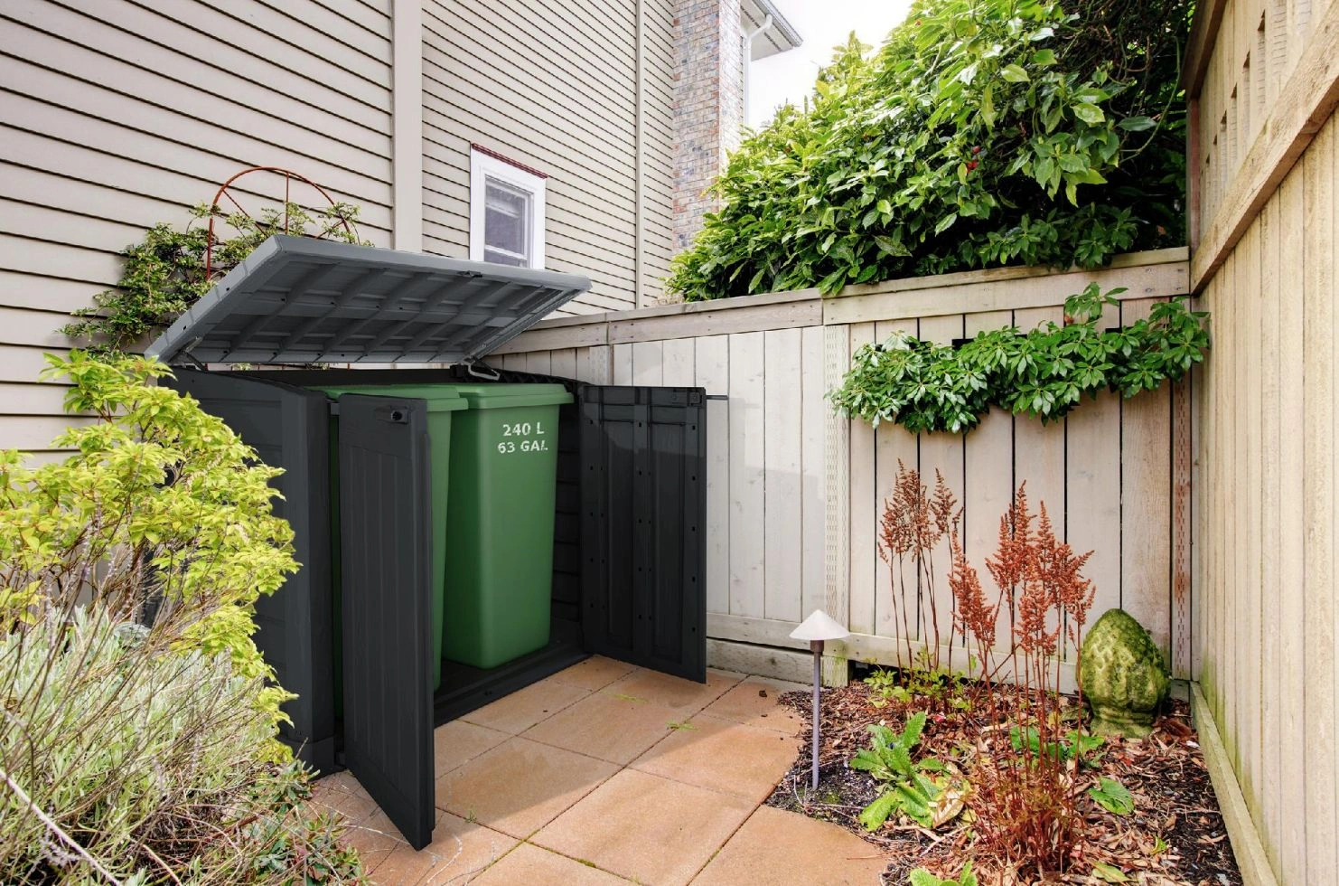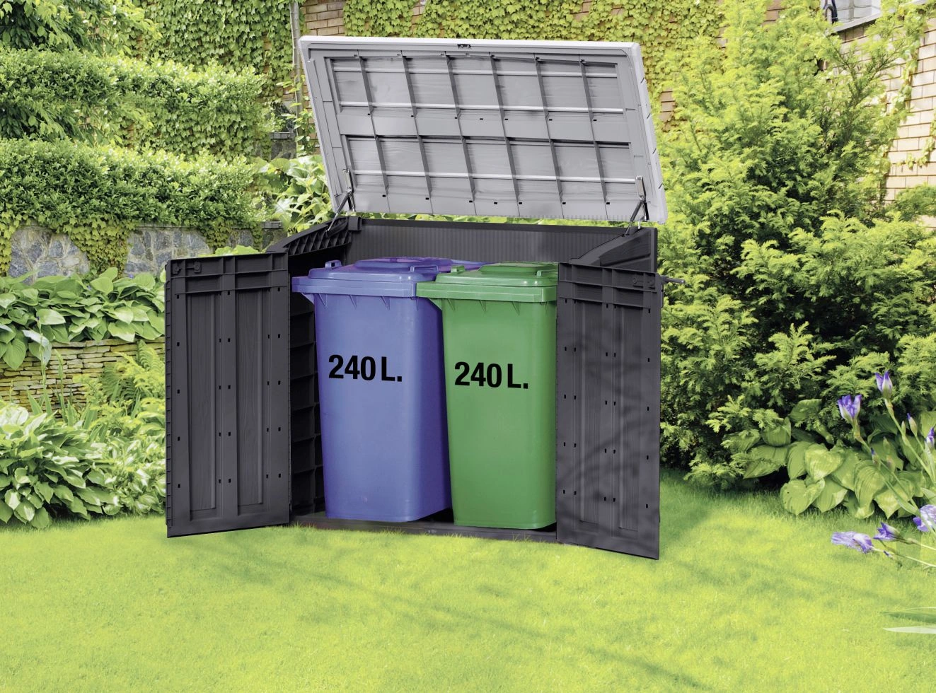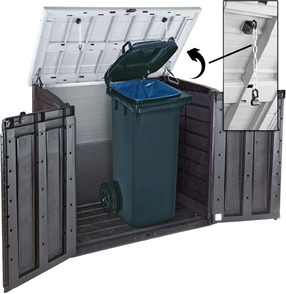 Vielseitige Gartenbox • Holzoptik • Platz für 2 × 240 l Mülltonnen