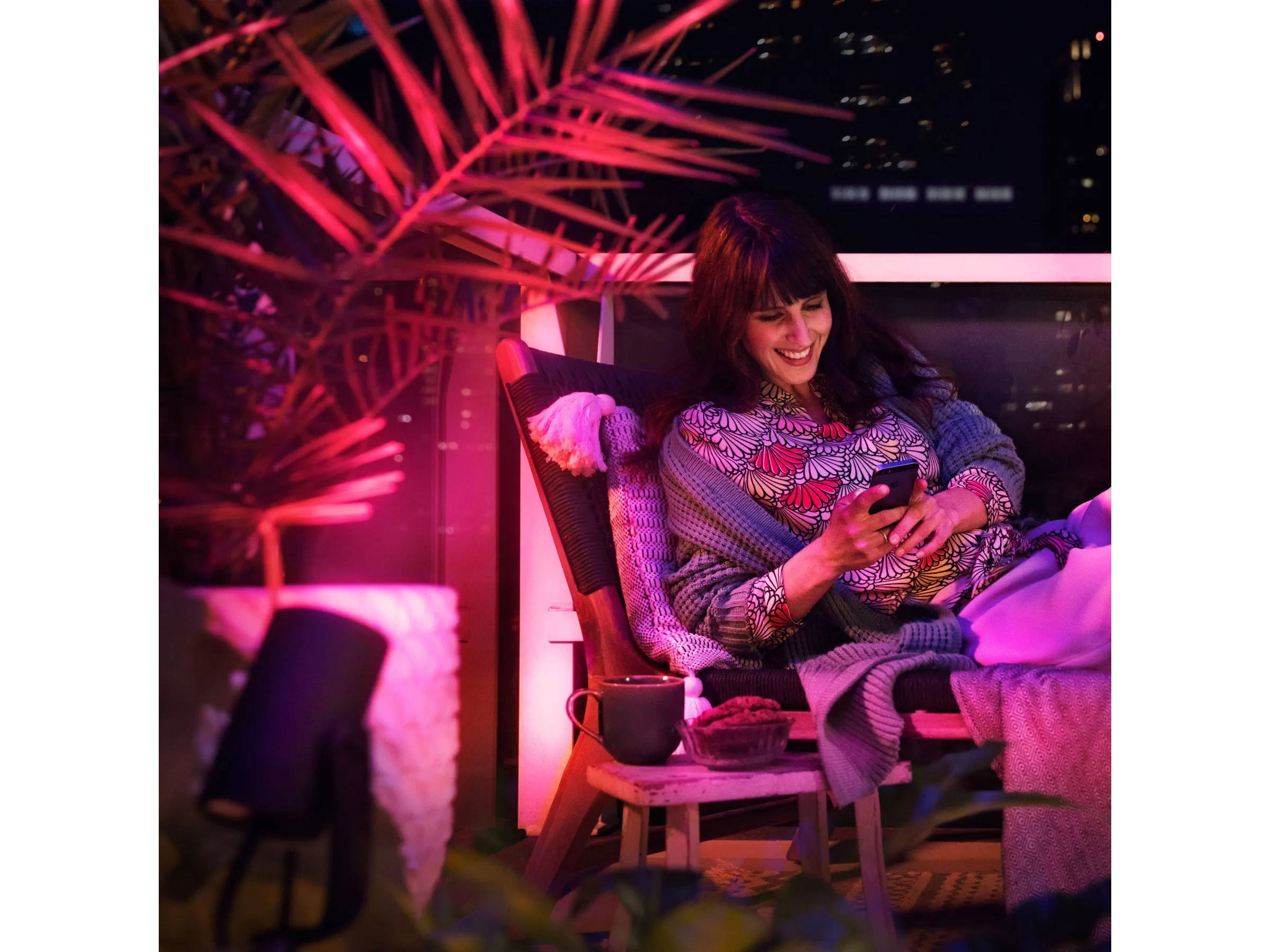 Steuerung über Smartphone oder Tablet mit der Philips Hue App, kompatibel mit Amazon Alexa, Apple HomeKit und Google Assistant. Flexible Lichtsteuerung über Bluetooth oder ZigBee (Hue Bridge separat erhältlich). Robust, wetterfest und mit Schutzklasse IP65 für den Außenbereich.