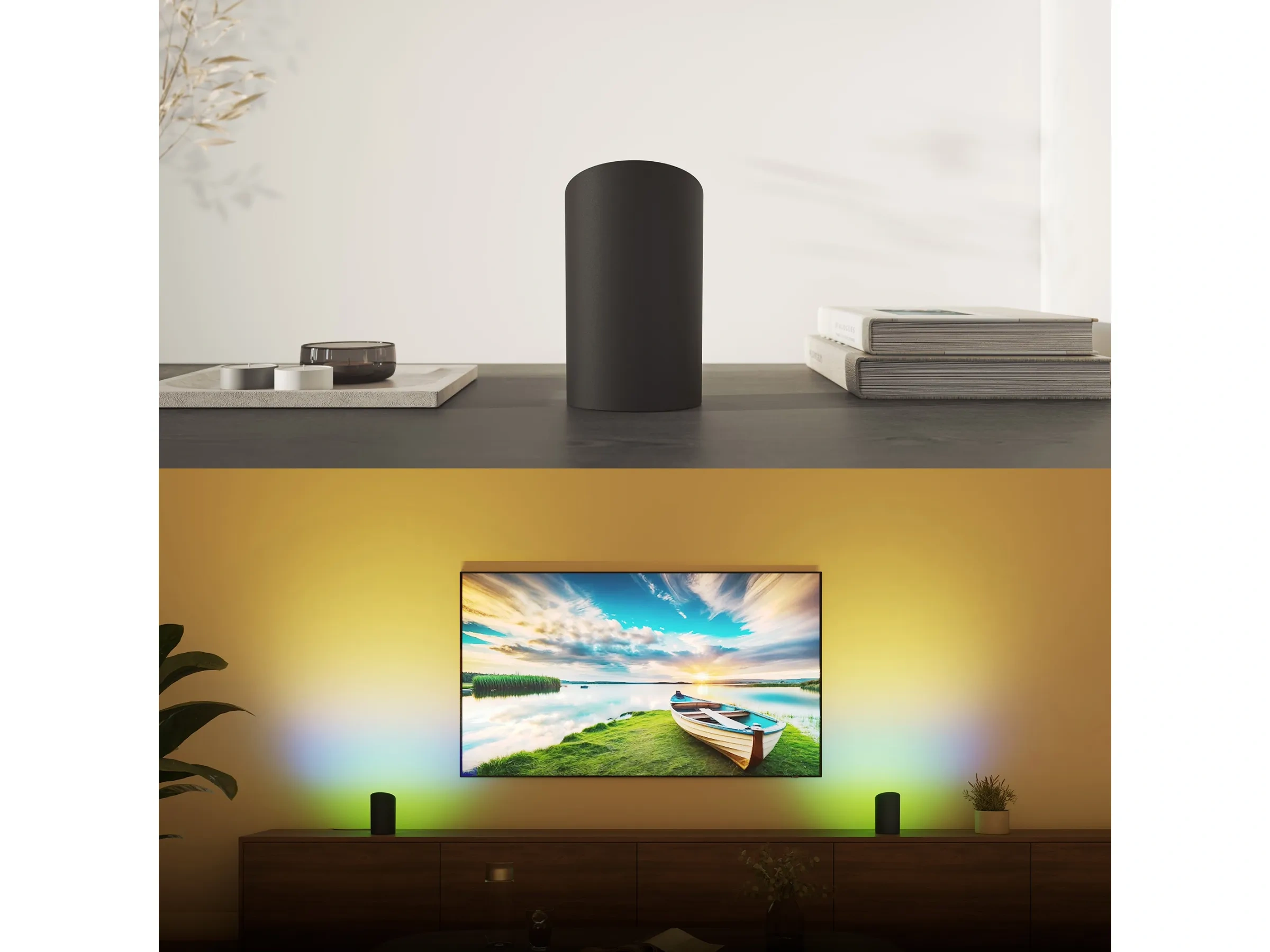 Der Philips Hue LED-Wallwasher Play überzeugt mit starker Farbwirkung und kompaktem Design. Dank ColorCast-Technologie entstehen lebendige Farben ohne störende Übergänge. Breitere Lichtwirkung sorgt für beeindruckendes Wallwashing an TV, Sideboard oder Wand.
