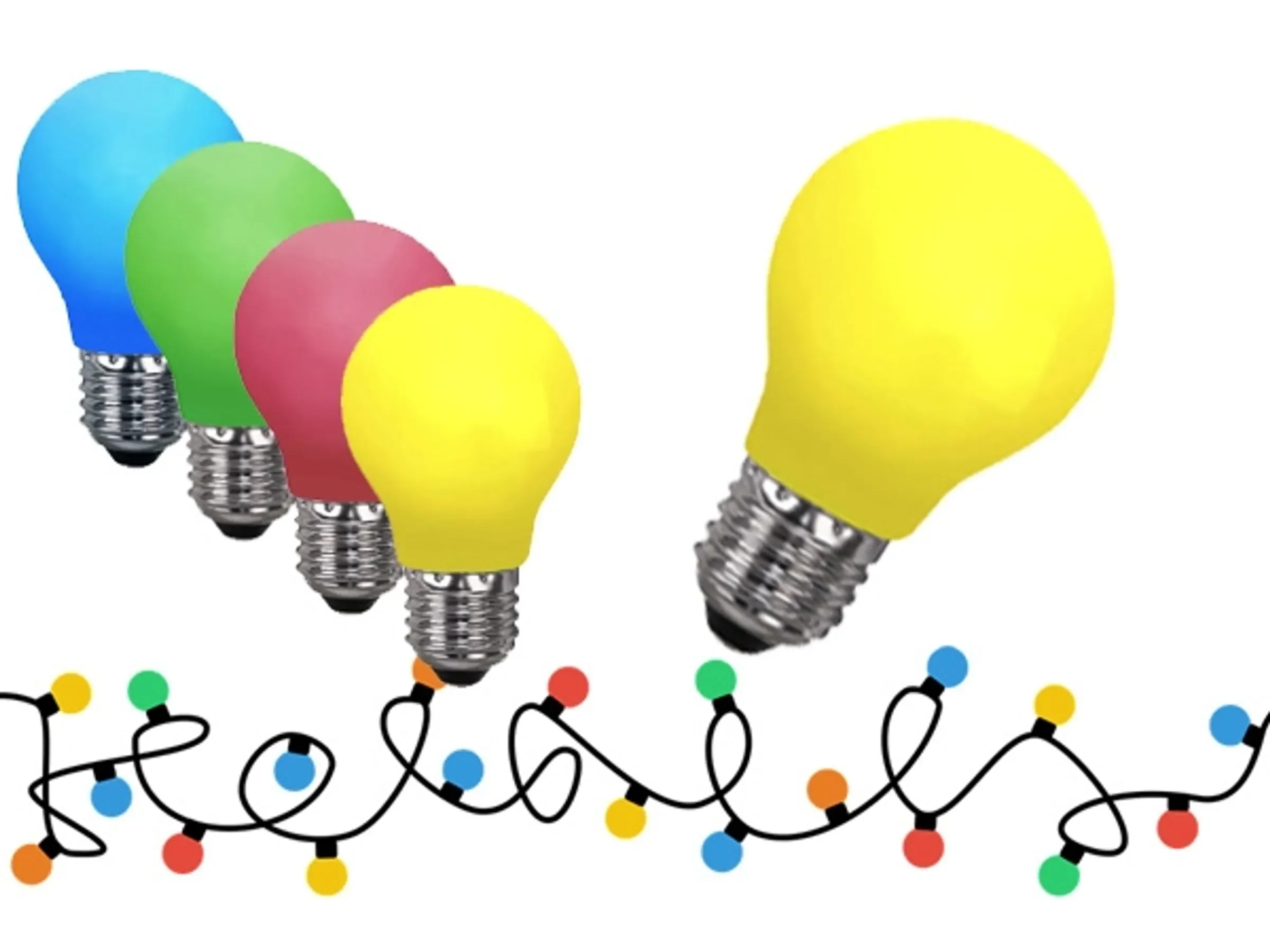 | Leuchtmittel | 60 × bunte LED-Tropfenlampen, bruchfest, Polycarbonat, nicht dimmbar, 1 W |
