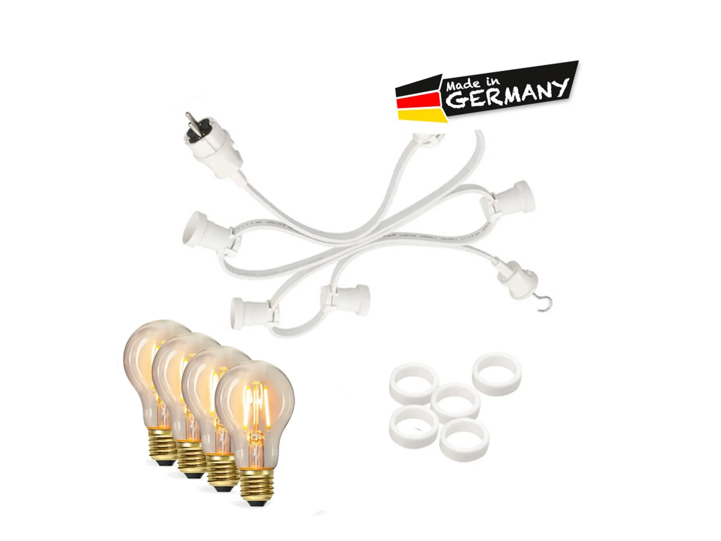Diese hochwertige ILLU-Partylichterkette in klassischem Weiß sorgt mit ihren ultra-warmweißen LED-Filamentlampen für eine besonders gemütliche Atmosphäre im Außen- und Innenbereich. Die 40 m lange Lichterkette ist mit 60 vormontierten E27-Fassungen ausgestattet und erzeugt ein stimmungsvolles Licht, das an nostalgische Edison-Lampen erinnert – perfekt für Terrassen, Biergärten, Pavillons oder festliche Gartenbeleuchtung.