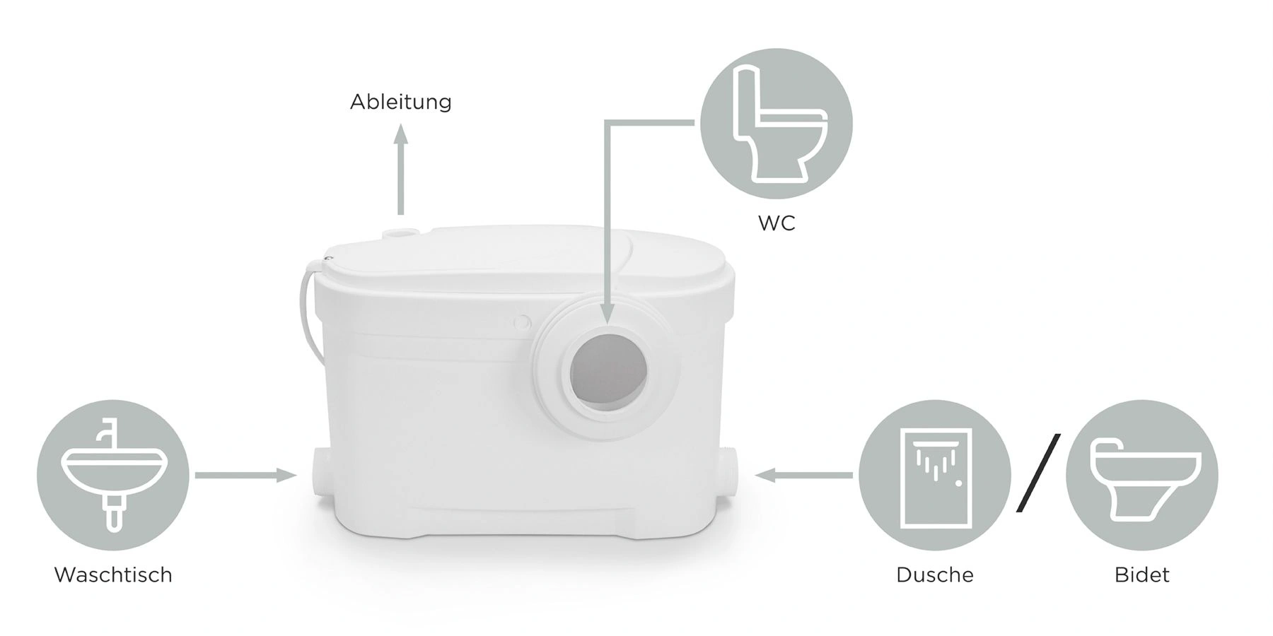 Flexible Kleinhebeanlage • Hohe Pumpleistung • Für WC & Badinstallation