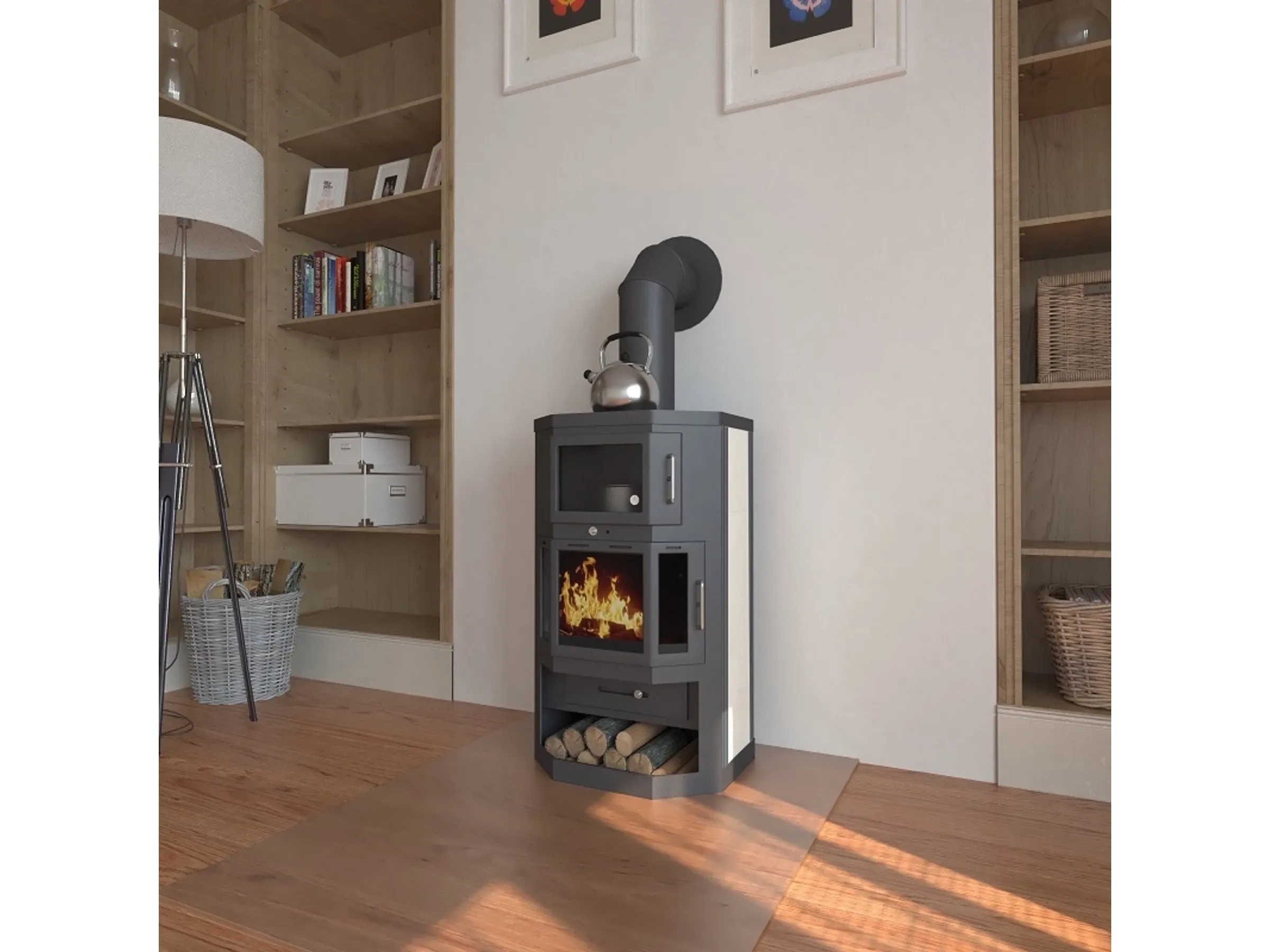 Der Victoria Taro F verbindet kraftvolle Heizleistung mit echter Zusatzfunktion für den Alltag: Dank integriertem Backfach und vollwertiger Herdplatte können Sie Brot, Brötchen, Aufläufe oder Pizza zubereiten – unabhängig von Strom oder Gas. Die robuste Metallkonstruktion und die Keramikverkleidung unterstreichen den wertigen Charakter dieses Ofens.